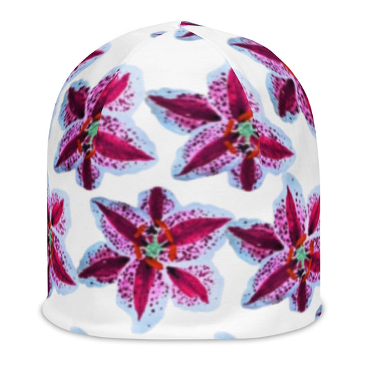 Tiger Lily Beanie,beanie hat,slouch hat,ski hat,womens beanie,floral beanie hat,chemo beanie,cancer hat,running hat