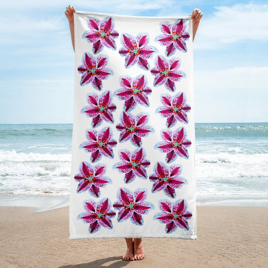 Tiger lily floral towel,bath towel,botanical towel,housewares,decor,pool towel,beach towels,kids bath towel,guest towel,gym towel,fun towel