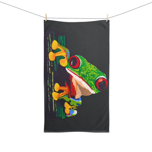 Tree Frog Hand Towel, Nature Inspired Modern Art Hand Towel, Colorful Black Green Bathroom Decor