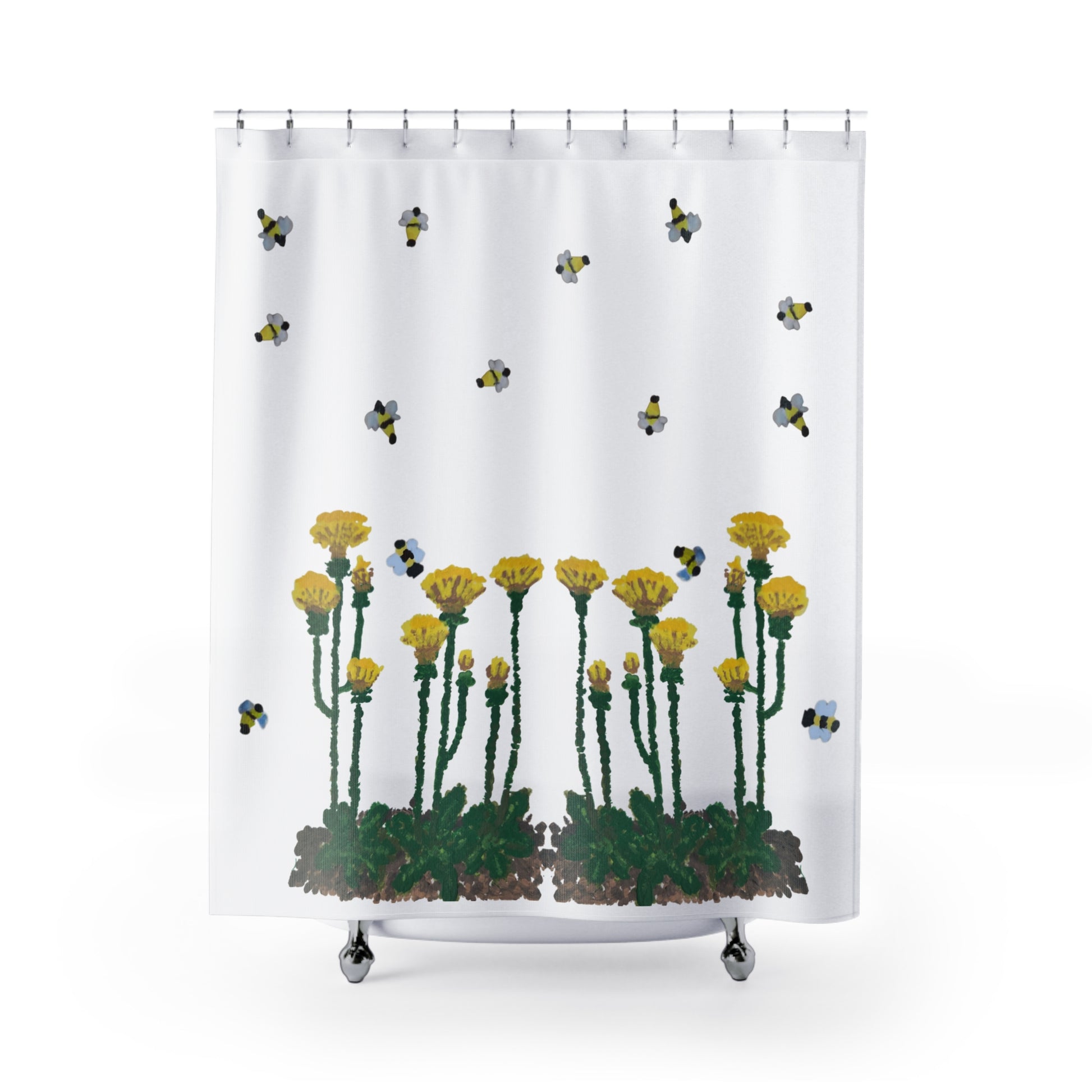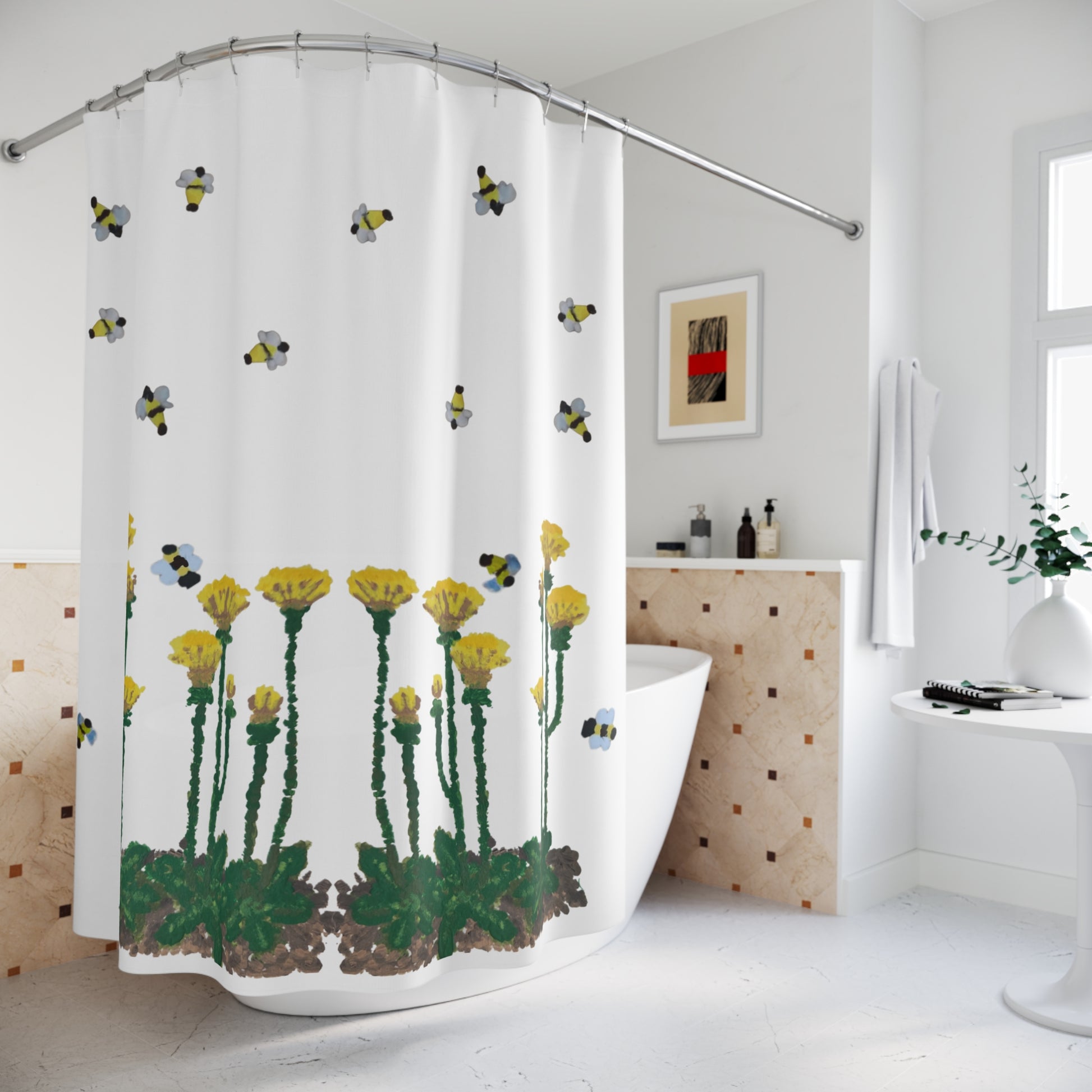 Dandelions and Bees Shower Curtains, Nature Inspired Botanical Bathroom Decor, Printed Floral Shower Curtain