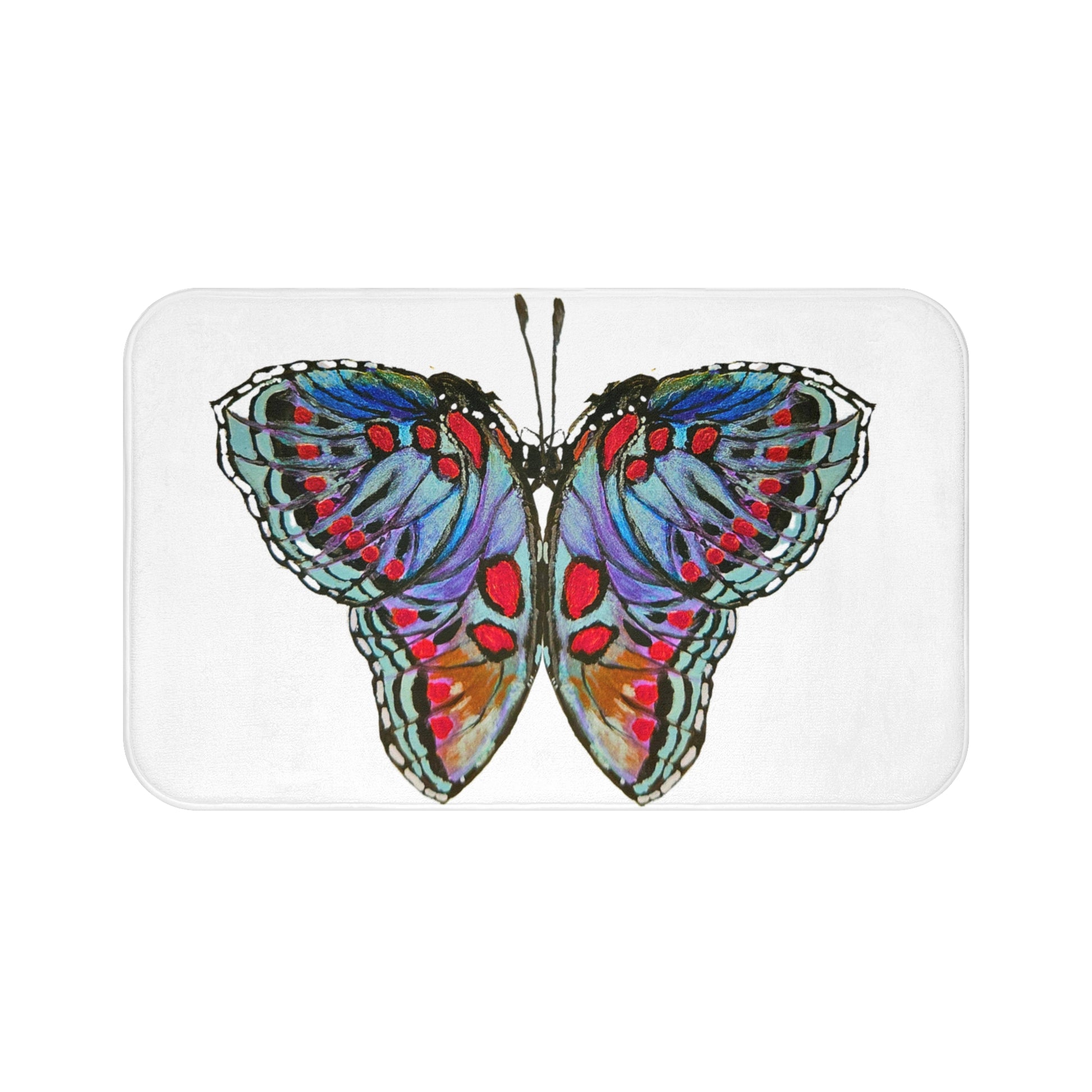 Monarch Bath Mat, Non Slip Backing Memory Foam Mat, Trendy Botanical Accent Rug