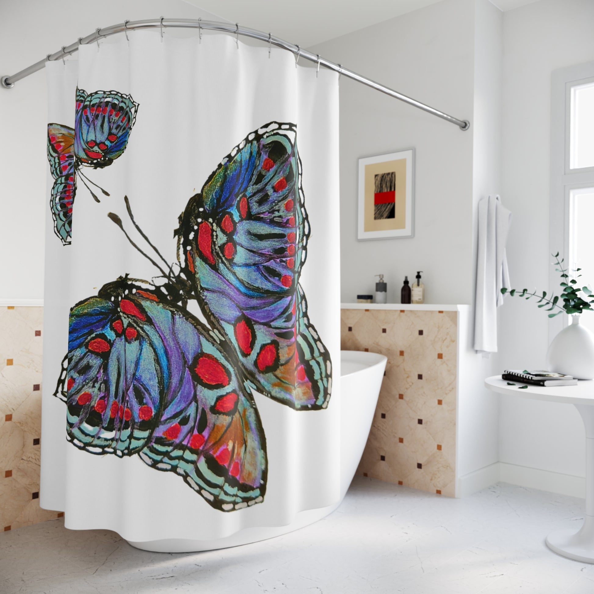 Monarch Shower Curtains, Spring Bathroom Refresh Gift, Printed Floral Bathroom Decor