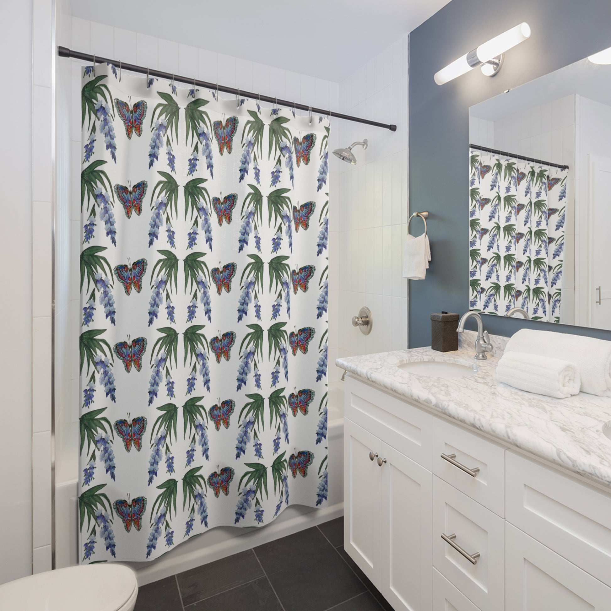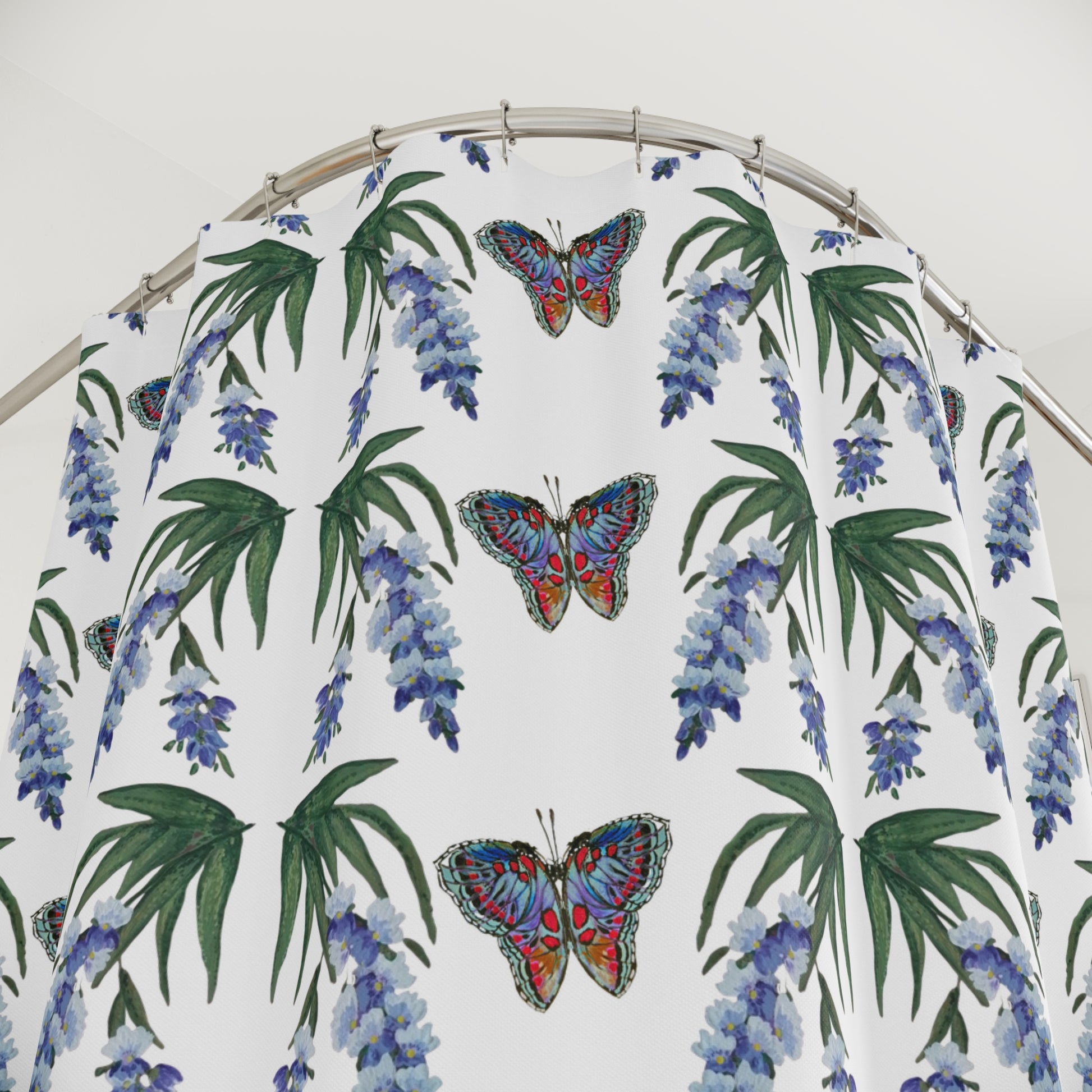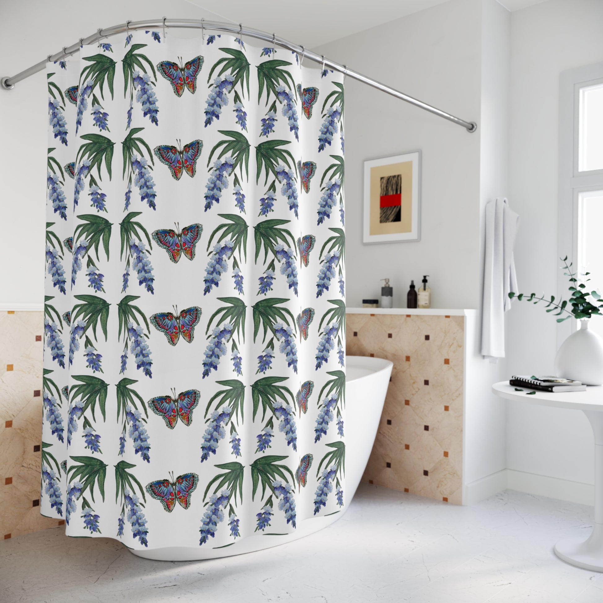 Monarch Wisteria Shower Curtains, Printed Floral Bathroom Decor, Spring Bathroom Refresh Gift