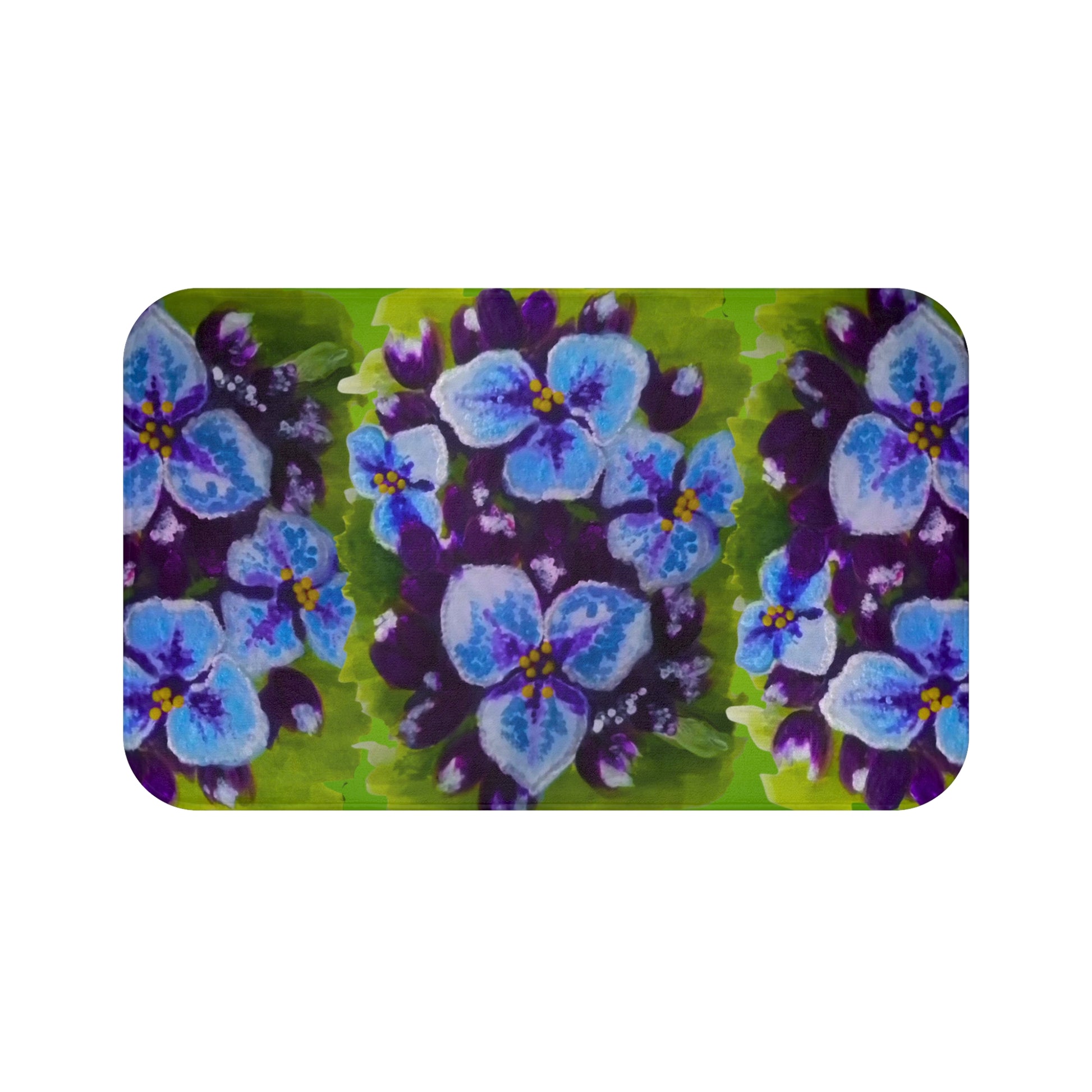 Purple Flowers on Green Bath Mat, Trendy Decorative Accent Rug, Non Slip, Memory Foam