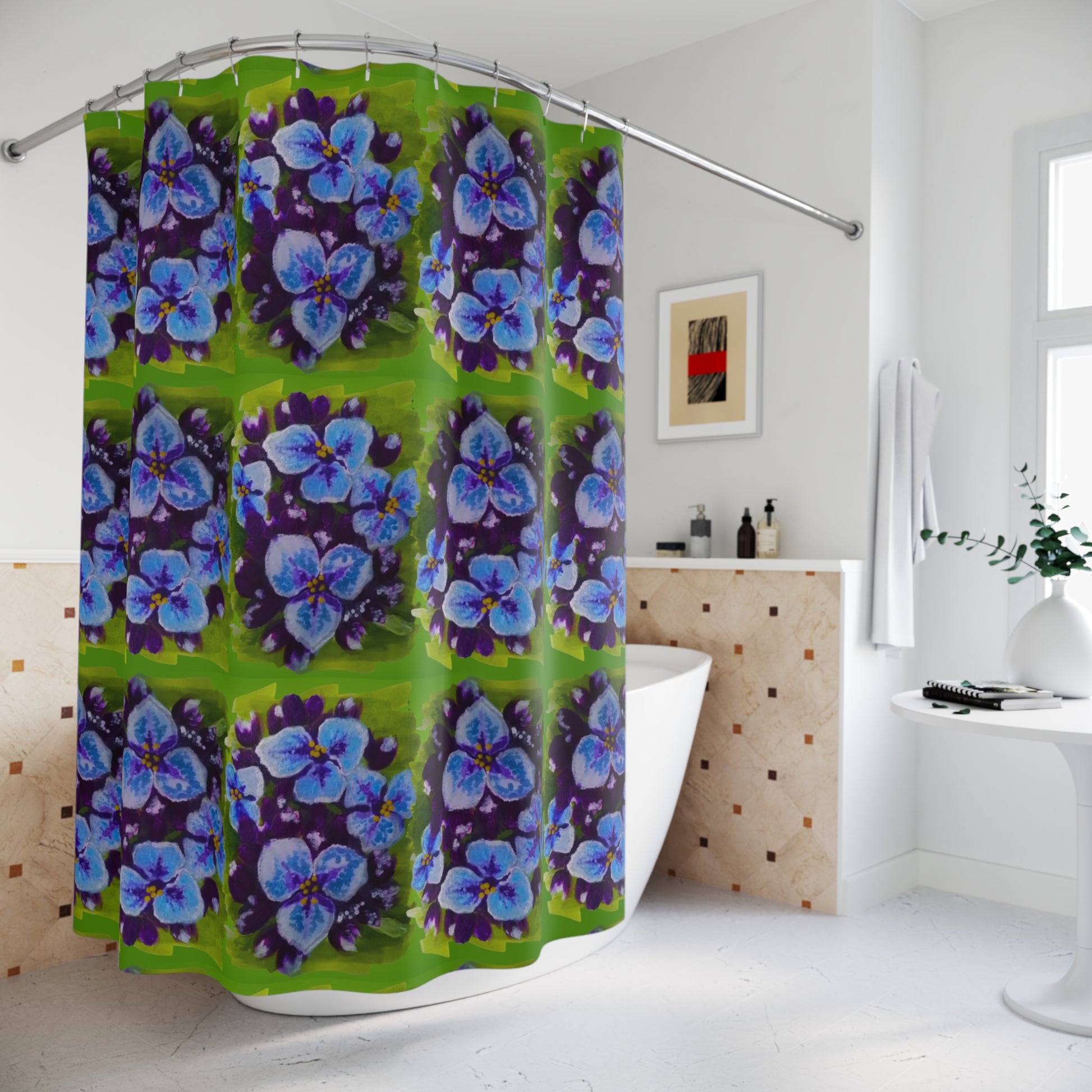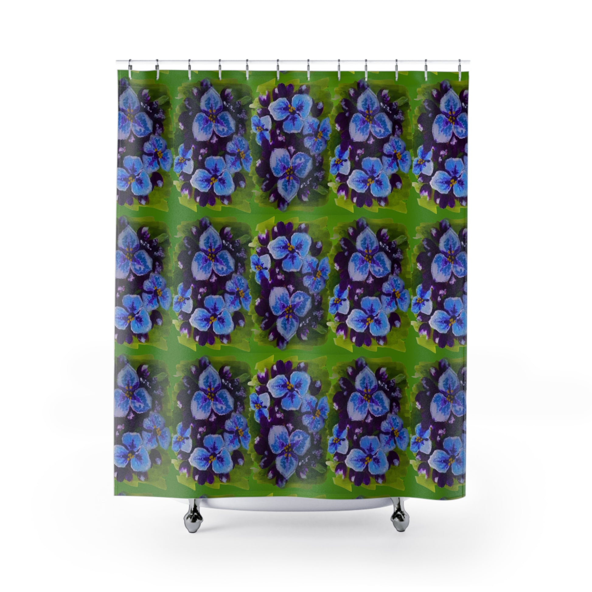 Purple Flowers on Green Shower Curtains, Beautiful Botanical Printed Bathroom Curtains