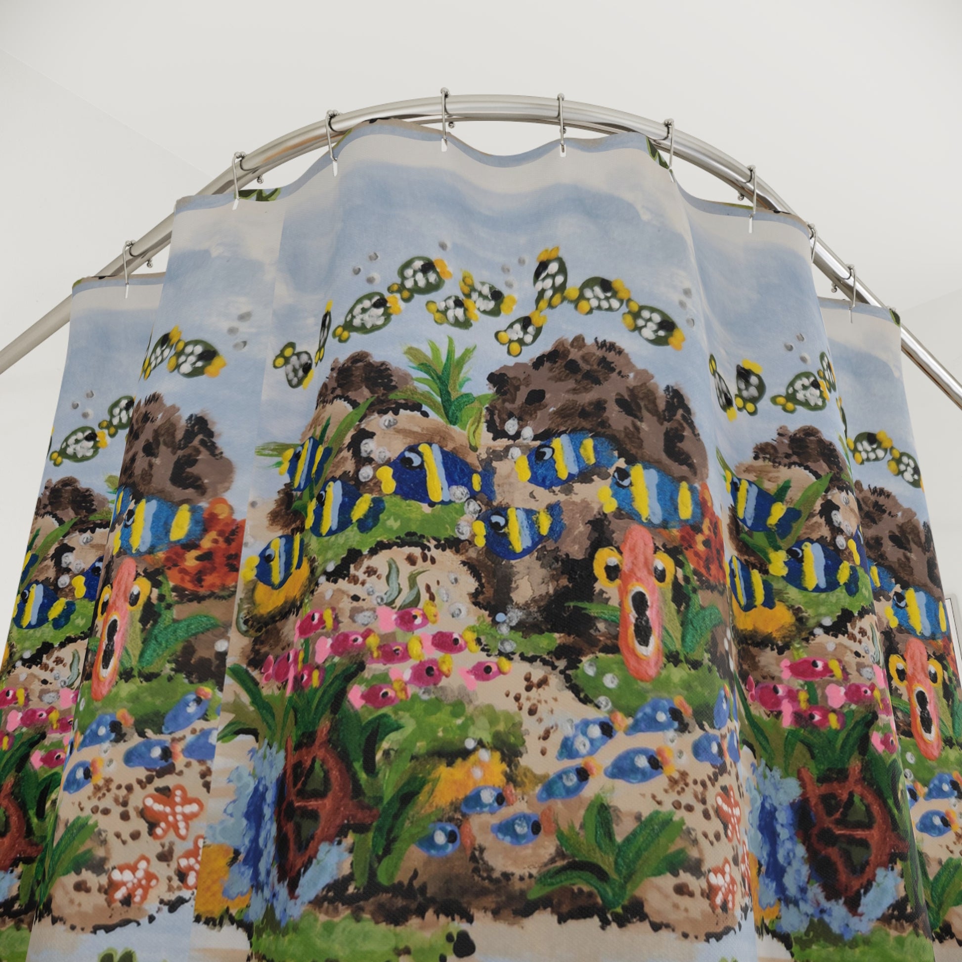 This shower curtain is here to add an original touch to any bathroom. Made with highly durable polyester, this curtain stays like new for a long time to come. Designed with care and passion, it is worth noting that the original design of this shower curtain was created by a talented stroke victim. It embodies their resilience and artistic expression, adding a special touch to each and every morning.